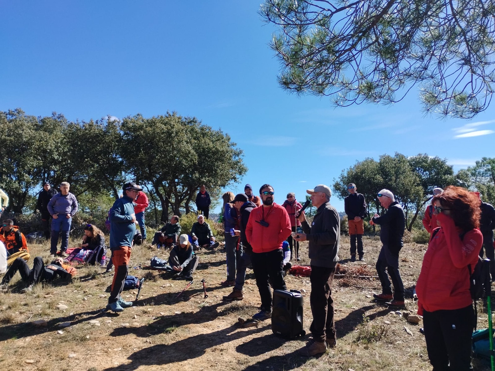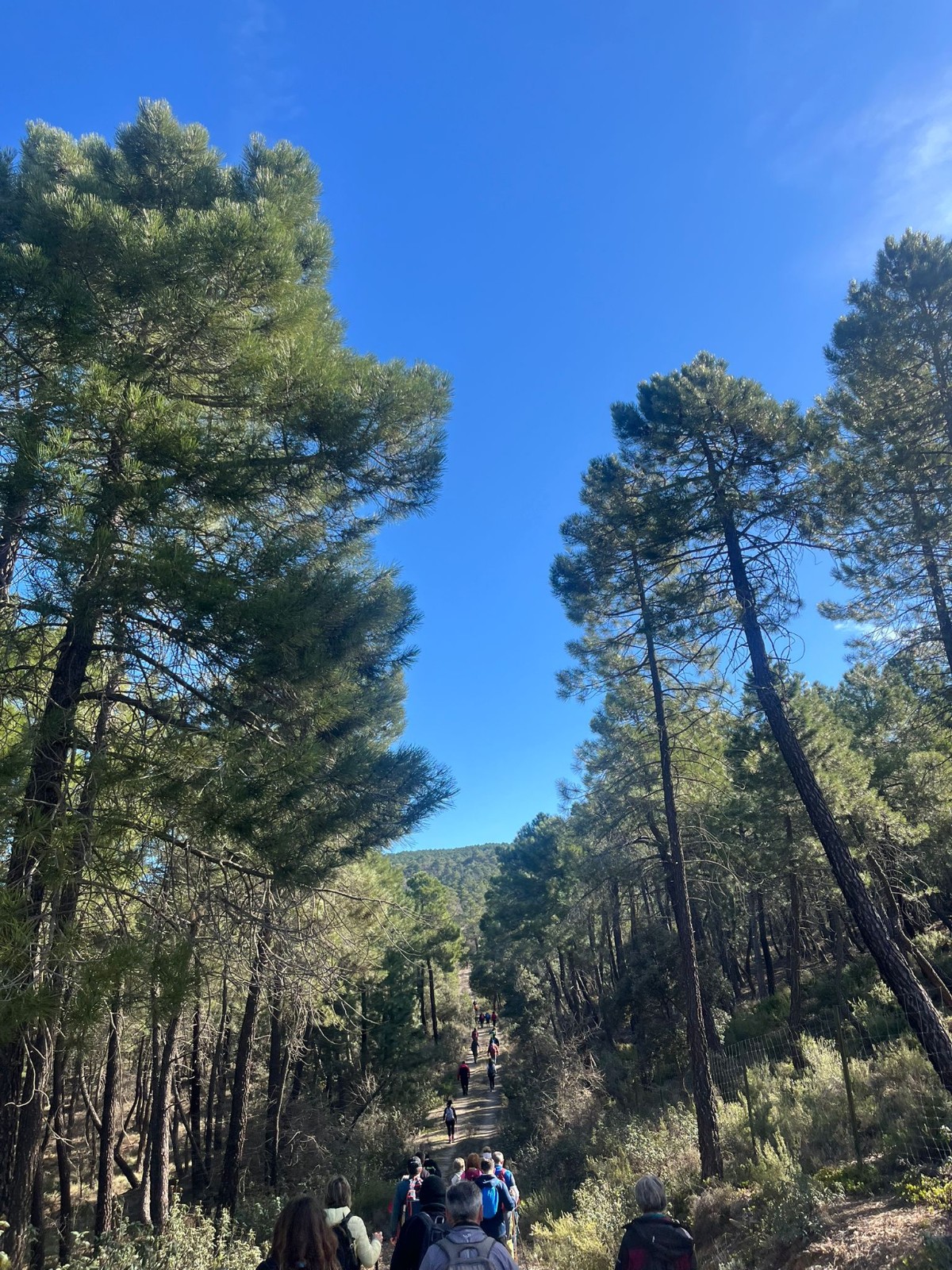 Posteriormente la ruta nos llevó a Sacedoncillo, localidad que hoy no puede visitarse por ser hoy una finca agrícola privada y que conserva su Iglesia Parroquial del siglo XVI, y pronto empezaríamos la subida por estas laderas ya empinadas de la Sierra de Bascuñana, donde el pino, las encinas y las jaras empiezan a predominar en el paisaje, hasta alcanzar el “Cerro Pelado”, mirador privilegiado de la Sierra de Bascuñana, y que se convirtió en el lugar de parada, almuerzo y convivencia en esta jornada.
