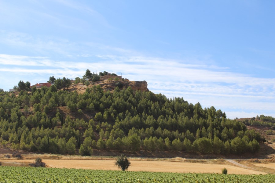 Se cruza y se sigue por el camino de servicio de la vía férrea Madrid – Valencia, hacia ña derecha. A la altura del pueblo, el trazado abandona la vía de servicio, cruza de nuevo la carretera y sube el cerro de la Horca hacia el casco urbano. Pasamos junto a la centenaria encina de la Carrasquilla antes de llegar al punto de partida