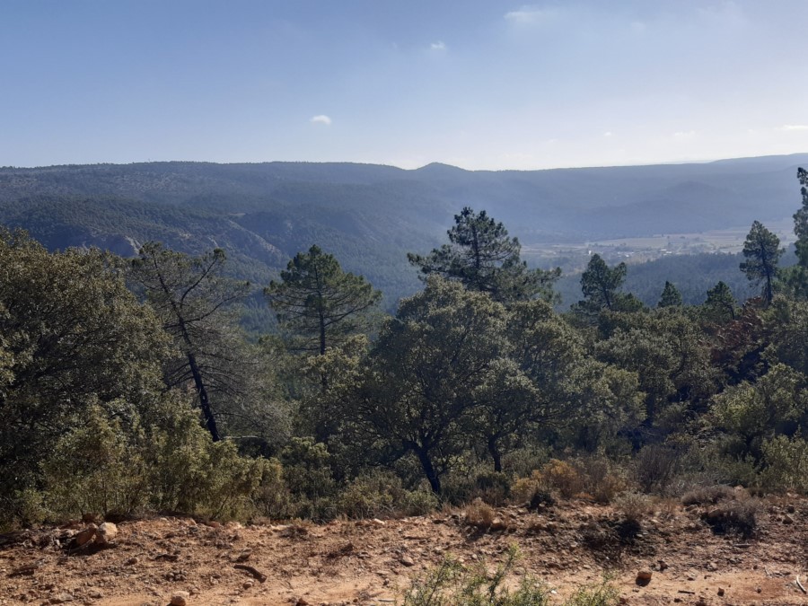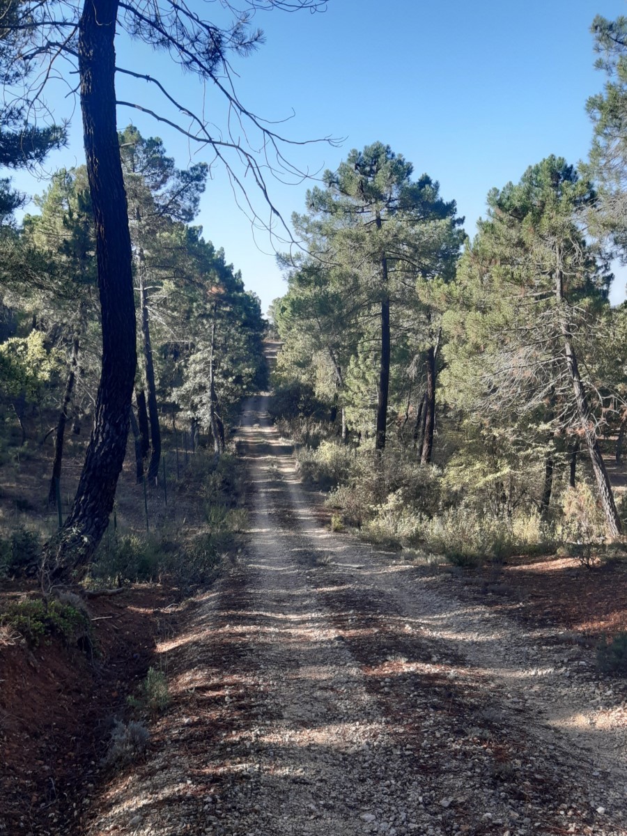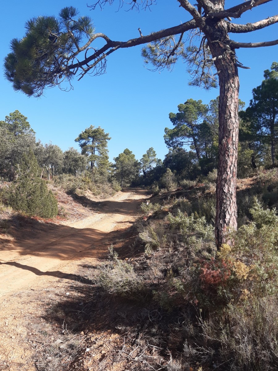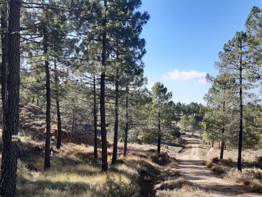 Hacia la mitad del recorrido volvemos por una pista forestal, y entraos en la población en paralelo a la carretera que viene de Cuenca. Atrás queda la Sierra, el bosque y las empinadas cuestas.