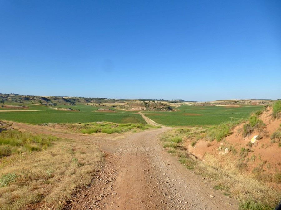 Tras cruzar el Puente Grande, tomamos una pista en dirección oeste. Enseguida nos veremos rodeados de los campos de cultivo propios de La Alcarria, que se extiende frente a nosotros.