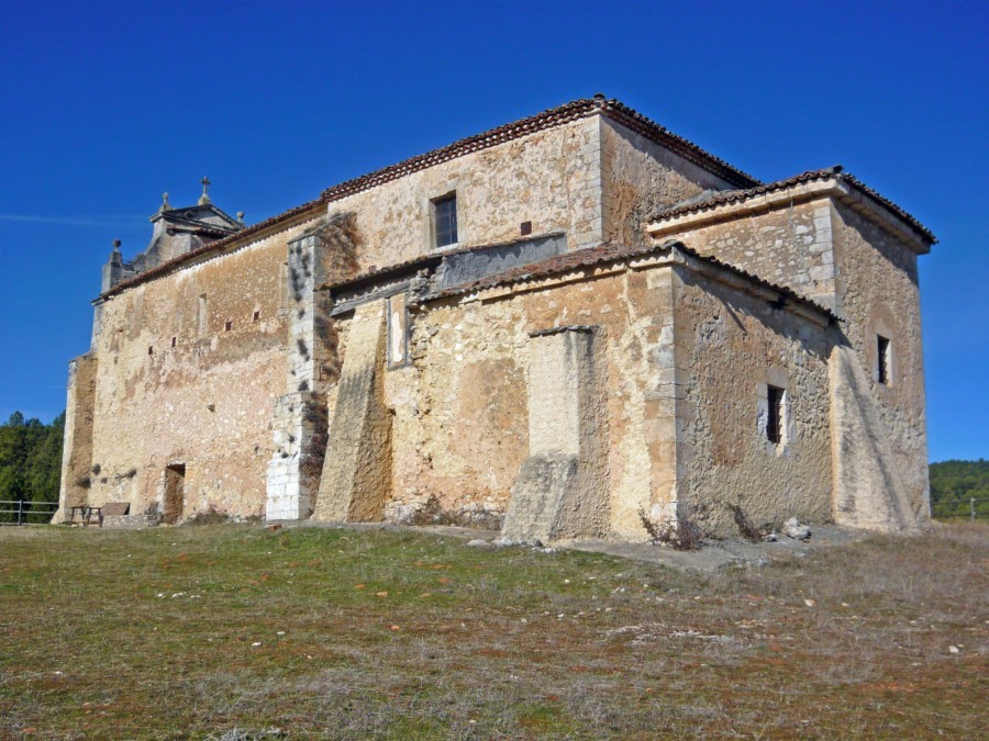 En el paraje de la Hoya Encama, gira el camino bruscamente hacia el oeste y asciende hasta el alto cercano en el que se encuentra la ermita.