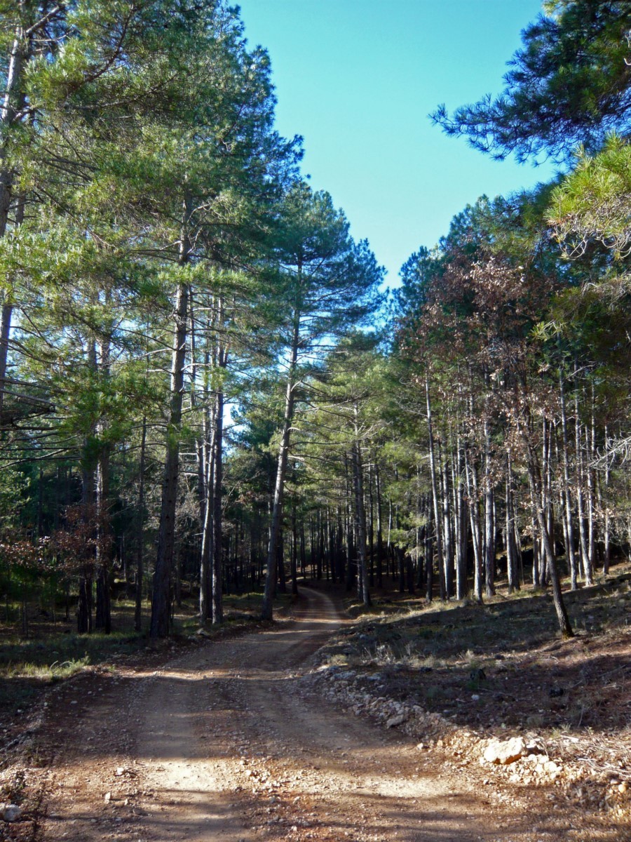 Salimos de la población en dirección sur, por el camino tradicional de la Virgen de los Hoyos. Desde el paraje del Pino Seco, caminamos en dirección a La Solana. Bordeamos la Hoya del Lobo y dejamos la pista principal para tomar otra de menor anchura que desciende y se encajona hasta llegar al pequeño arroyo estacional que se une poco más abajo al arroyo de la Virgen.