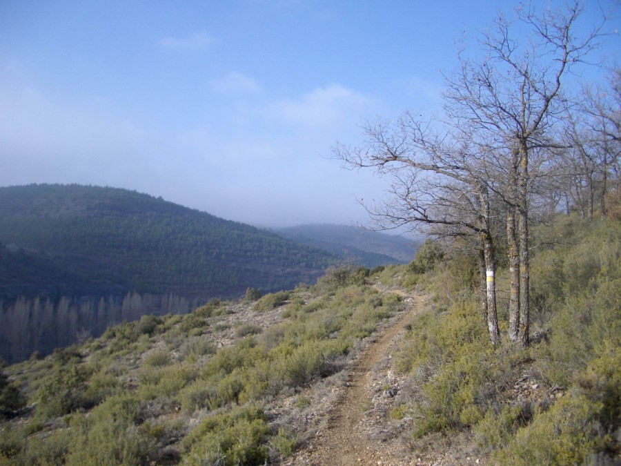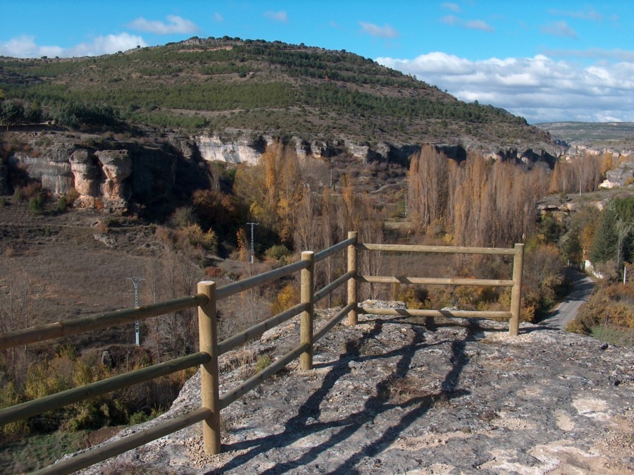 El cauce del río Huécar queda a nuestra izquierda. Desde el mirador de la Cruz Alta disfrutaremos de la panorámica de la hoz. Bordeamos después los vallejos del Rincón Pedregoso y Valdeladrones antes de acceder a Molinos de Papel.