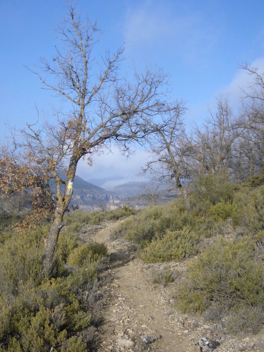 Iniciamos el regreso cruzando el río y siguiendo por un camino hacia la izquierda, en dirección este. Con el río ahora a nuestra izquierda, la senda atraviesa el paraje de los Centenares y continúa por el interior de la hoz.