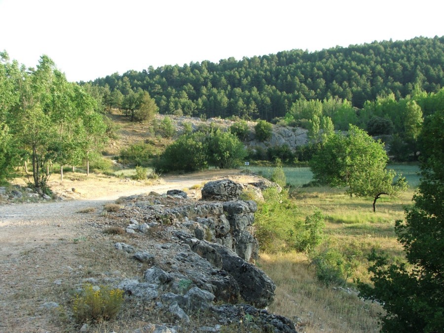 Este recorrido circular sale de la población de Huerta del Marquesado tras cruzar el río laguna. Tomamos un camino agrícola que desciende suavemente hasta La Herrería. El río nos acompaña por la derecha mientras las carrascas y los quejigos nos arropan desde los cortados de la izquierda.