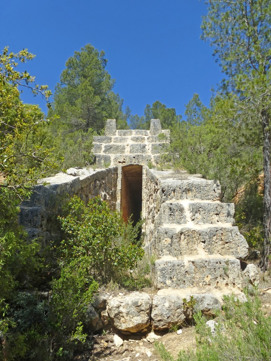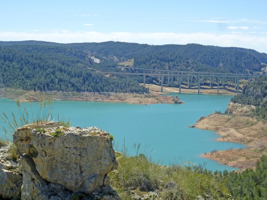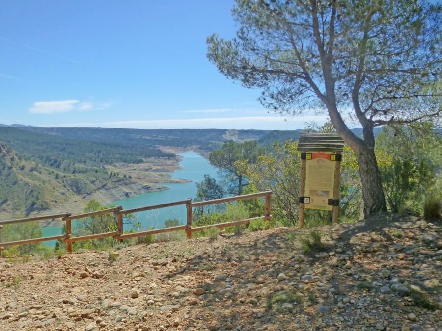 Encontramos al pie del camino un pequeño mirador desde el que podemos divisar el embalse de Contreras y la Autovía Madrid-Valencia. Continuamos bajando y encontramos tres pasos de agua o alcantarillas, de época romana, es excepcional estado de conservación y aún hoy realizando la función de evacuación para la que fueron construidas.