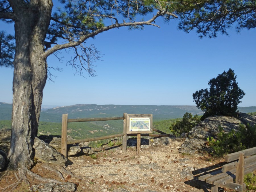 Iniciamos un prolongado descenso durante el que disfrutaremos de hermosas vistas. Existen dos pequeños miradores en este tramo: el de la Peña del Águila, que se asoma al barranco de la Hoz Somera, y el de Rocines, desde donde podemos divisar la hoz de Tragavivos, con vistas del estrecho de Guijarro y el embalse del Molino de Chincha.