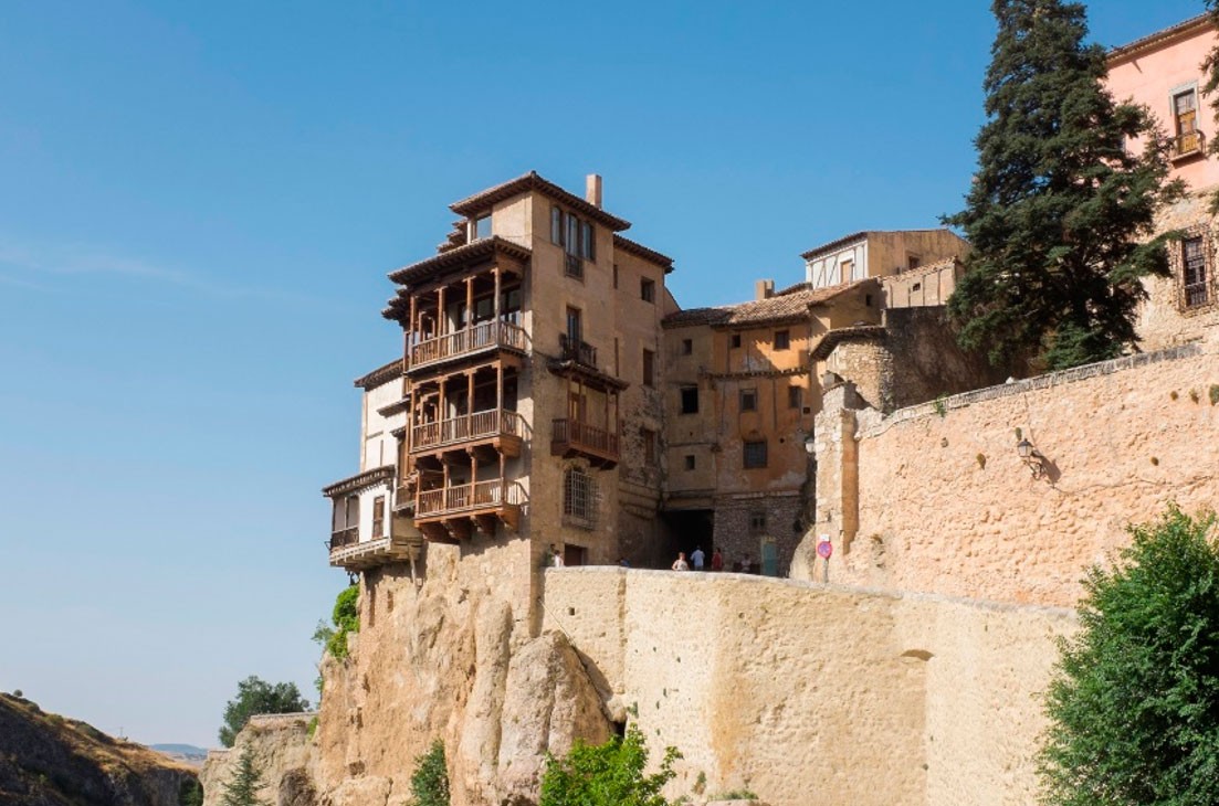 Uno de los símbolos universales de Cuenca son las Casas Colgadas, construcciones populares asomadas al abismo de la hoz del Huécar, que reflejan la adaptación arquitectónica al entorno natural. Hoy albergan el Museo de Arte Abstracto Español, institución clave en la proyección cultural contemporánea de la ciudad.