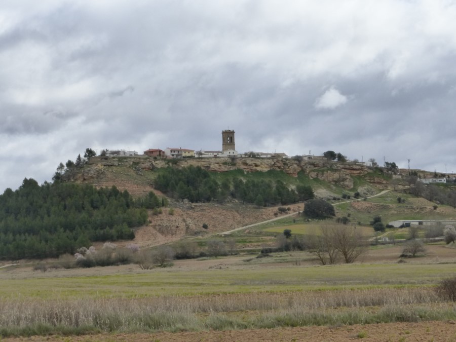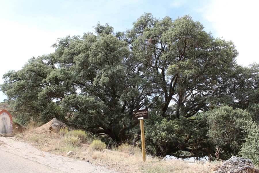 Se cruza y se sigue por el camino de servicio de la vía férrea Madrid – Valencia, hacia ña derecha. A la altura del pueblo, el trazado abandona la vía de servicio, cruza de nuevo la carretera y sube el cerro de la Horca hacia el casco urbano. Pasamos junto a la centenaria encina de la Carrasquilla antes de llegar al punto de partida