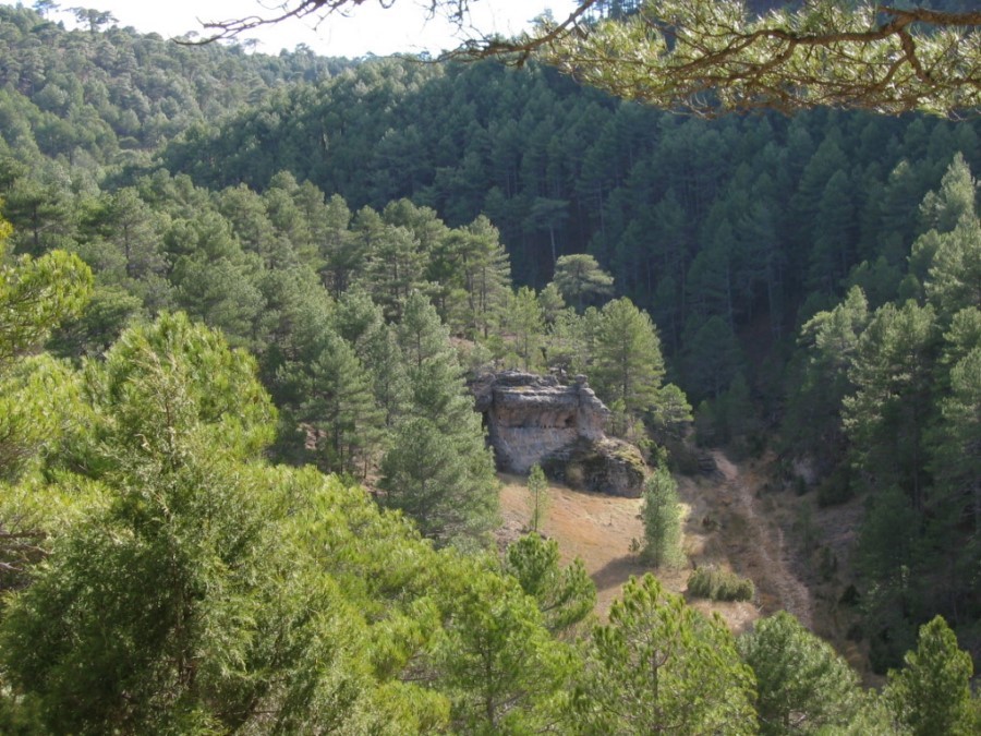 El recorrido desde Palomera sigue una senda por la margen derecha del río Huécar hasta su nacimiento en la zona conocida como el Bodegón. Tras un tramo de pista, tomamos de nuevo una senda, ahora paralela al arroyo de la Rambla, cuyo barranco se estrecha y nos obliga a afrontar una subida más pronunciada para salvarlo, hasta encontrar una pista cerca de Los Ceños, en lo alto del barranco de la Rambla.