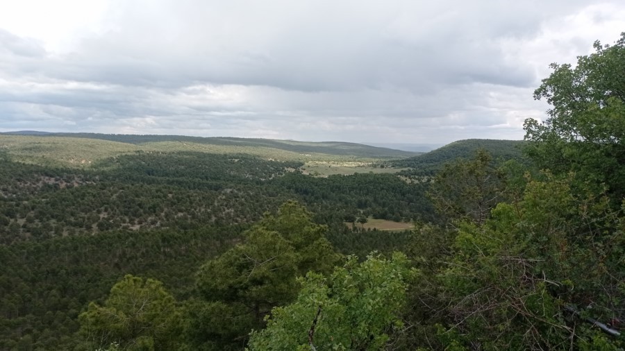 Recorremos ahora zonas abiertas y elevadas. La subida continúa por pista caminando junto a un vallado hasta el mirador del ceño, punto más elevado del sendero (1.322 m.), con una amplia vista de la dehesa de Cotillas y Tierra Muerta.