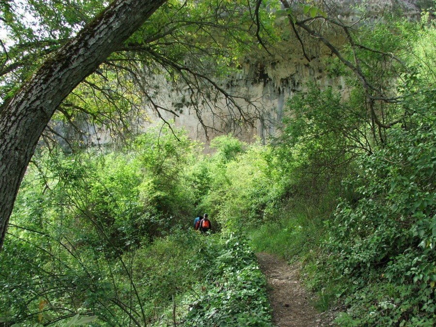 Iniciamos el regreso cruzando el río y siguiendo por un camino hacia la izquierda, en dirección este. Con el río ahora a nuestra izquierda, la senda atraviesa el paraje de los Centenares y continúa por el interior de la hoz.