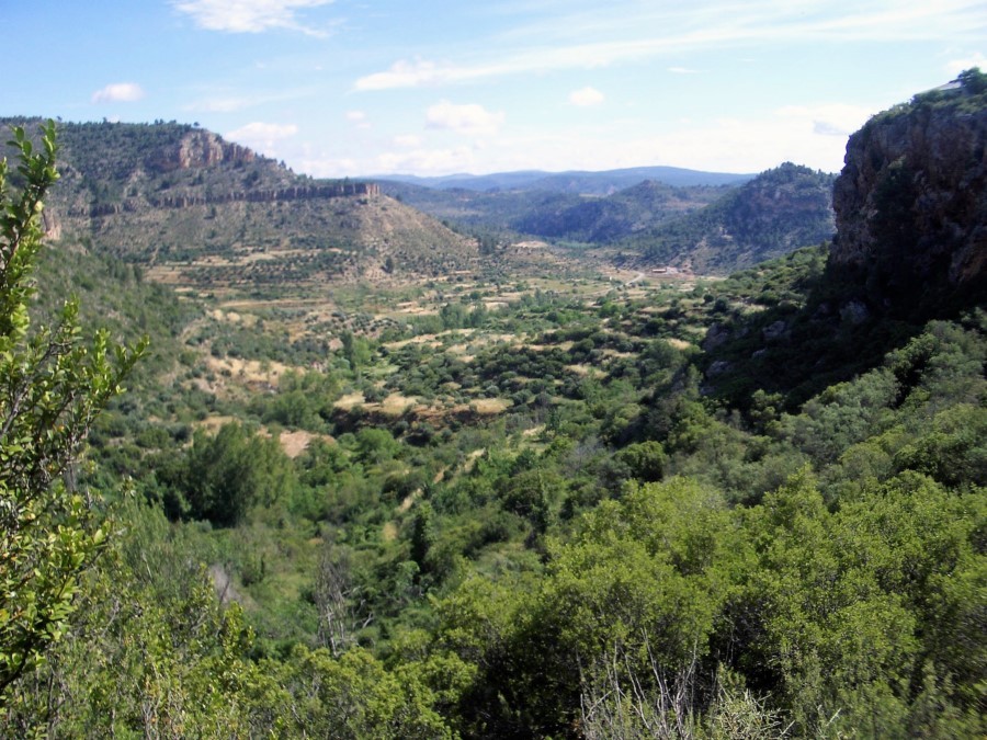 Desde aquí se baja bruscamente por una estrecha senda, que desemboca en la hoz Cerrada y se abre hacia la hoz Seca. Caminando ya sobre pista, continuamos hasta que el terreno se abre, uniéndose al valle del río Cabriel y la carretera que llega desde la vecina localidad de Cardenete.