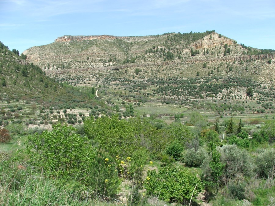 Ganamos altura lentamente siempre encajonados en el interior de la hoz del Agua. Encontraremos varios manantiales que riegan multitud de huertos. Cerca del final de la hoz, una subida más pronunciada, nos conduce hasta una zona más eleva, con extensas vistas y que supone la mitad del recorrido.