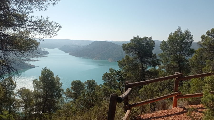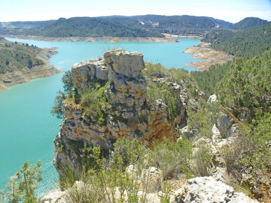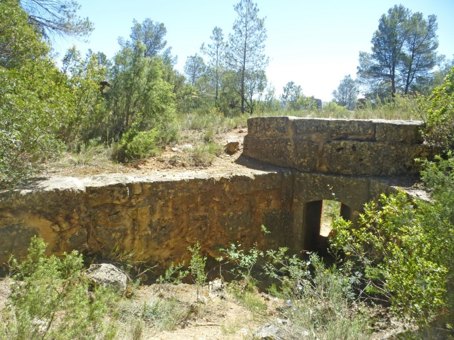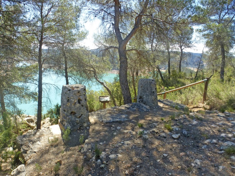 Encontramos al pie del camino un pequeño mirador desde el que podemos divisar el embalse de Contreras y la Autovía Madrid-Valencia. Continuamos bajando y encontramos tres pasos de agua o alcantarillas, de época romana, es excepcional estado de conservación y aún hoy realizando la función de evacuación para la que fueron construidas.