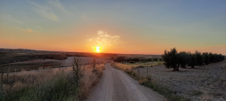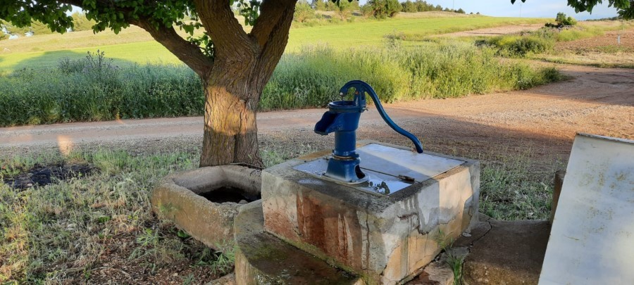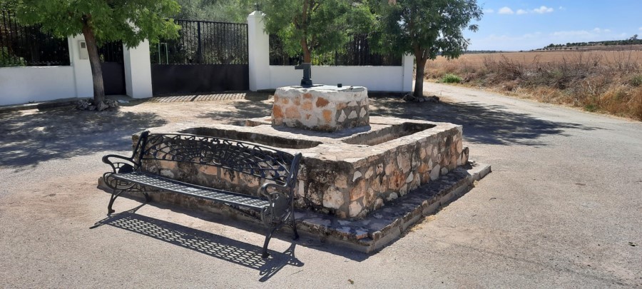Tras cruzar la N-301 se llega al pozo de El Aljibe, donde seguimos hacia el oeste para entrar al pueblo por la calle Mayor (este tramo urbano coincide con el GR 239 Camino de Santiago del Levante).