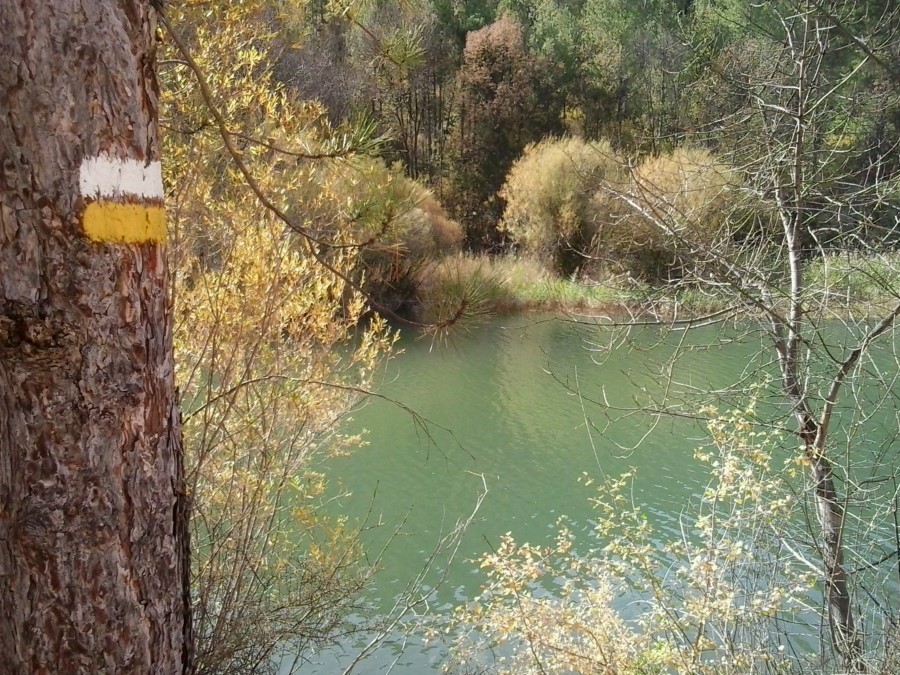 Discurre en su totalidad por pista amplia y bajo la sombra de un frondoso bosque de pino que rodea las aguas del embalse, que recibe su caudal de los ríos Guadiela y Cuervo, confluyendo ambos a la salida de la población.