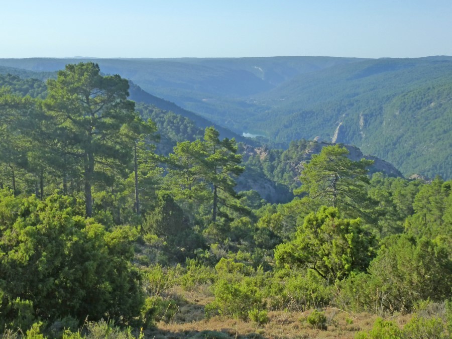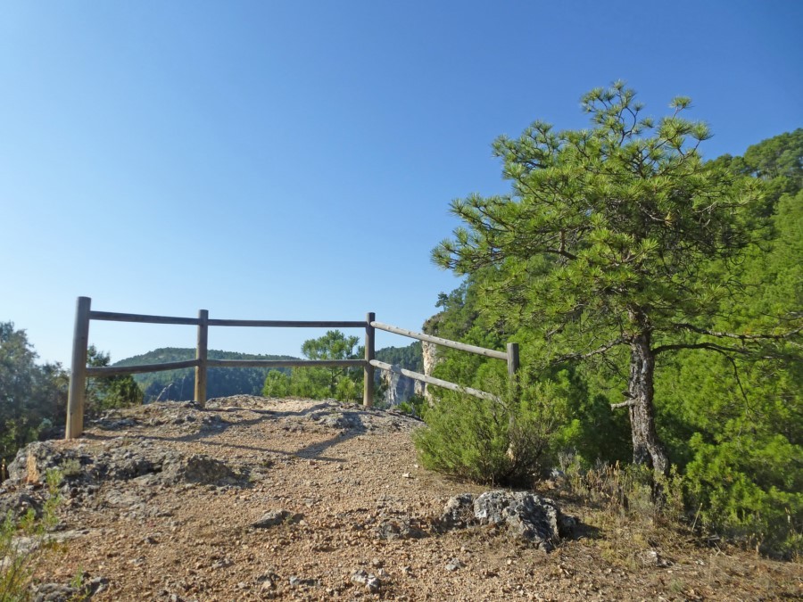 Iniciamos un prolongado descenso durante el que disfrutaremos de hermosas vistas. Existen dos pequeños miradores en este tramo: el de la Peña del Águila, que se asoma al barranco de la Hoz Somera, y el de Rocines, desde donde podemos divisar la hoz de Tragavivos, con vistas del estrecho de Guijarro y el embalse del Molino de Chincha.