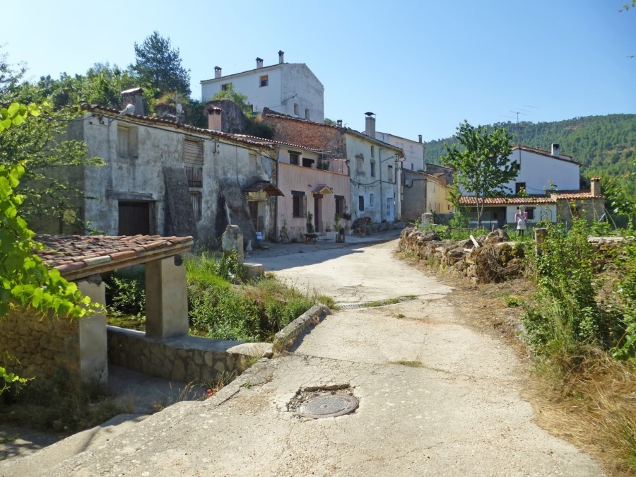 El camino se encajona y desciende hasta las aguas del barranco de la Hoz Somera, que cruzamos por el puente de las Tobillas. Ascendemos para rodear las Cercas de Ganga y bajar por último en busca de las primeras casas de la Herrería de Santa Cristina.