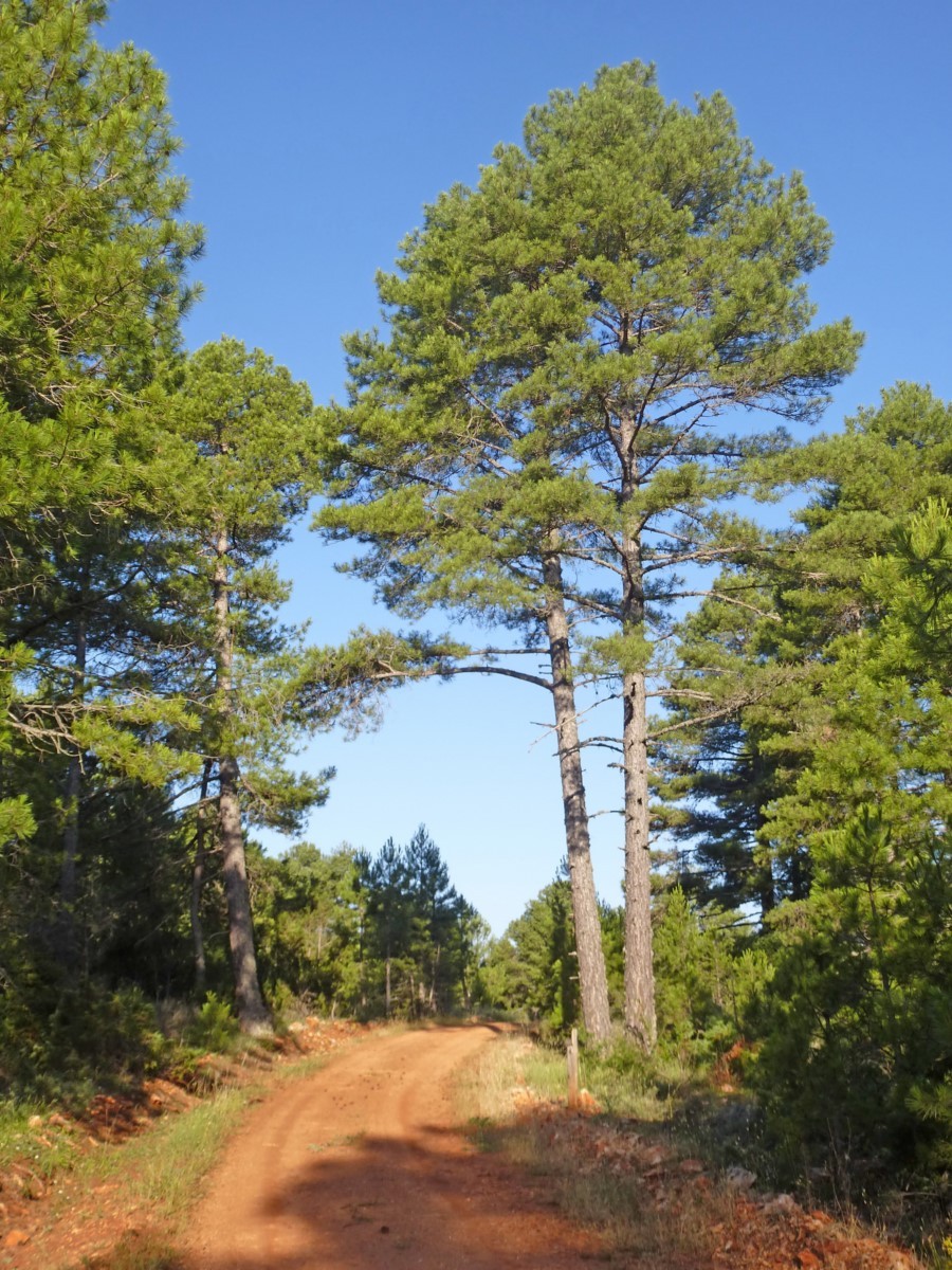 Discurre por una pista que afronta grandes desniveles. Salimos de la población por el lavadero, para tomar el camino tradicional de Santa Cristina. Llegamos a una zona elevada, conocida como Los Pimpollos, y nos internamos en el pinar.